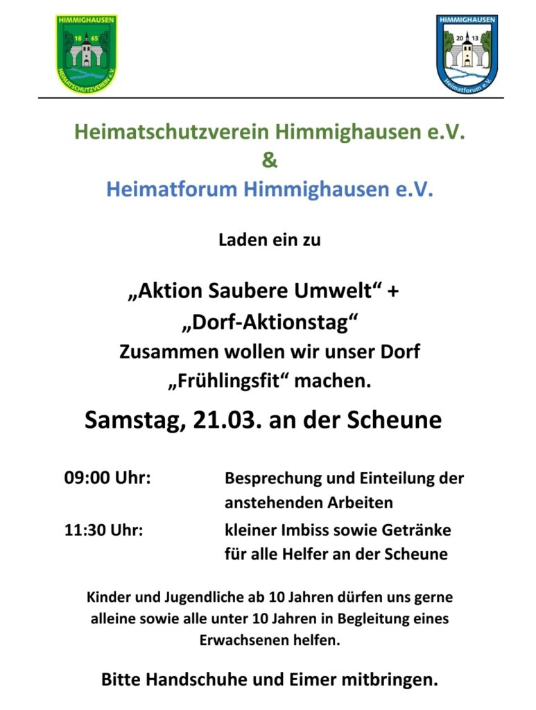Aktion Saubere Umwelt & Dorf-Aktionstag am 21. März 2026