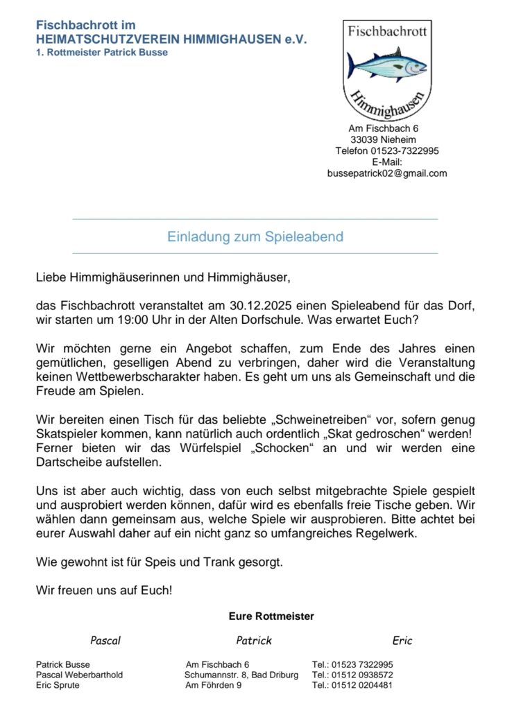 Spieleabend des Fischbachrotts